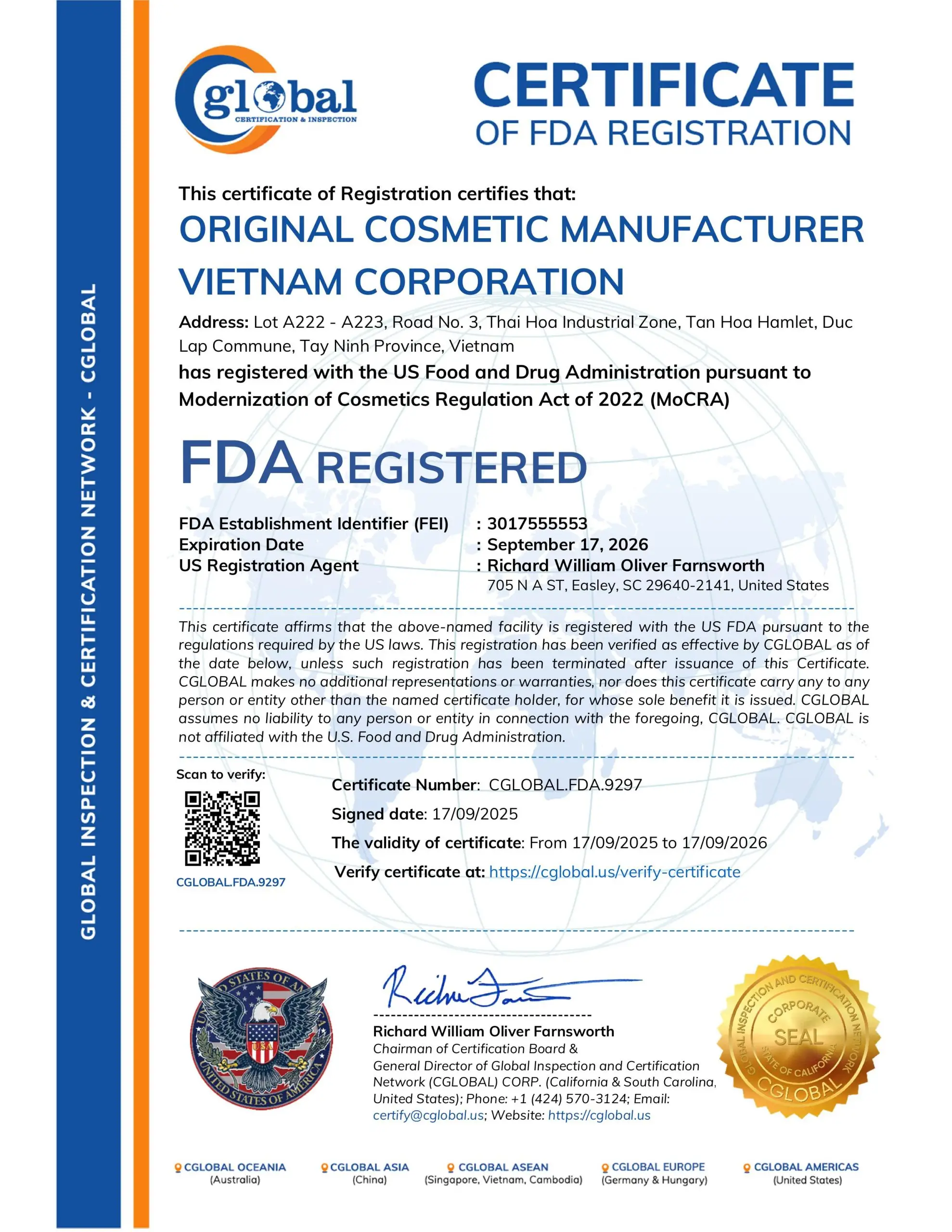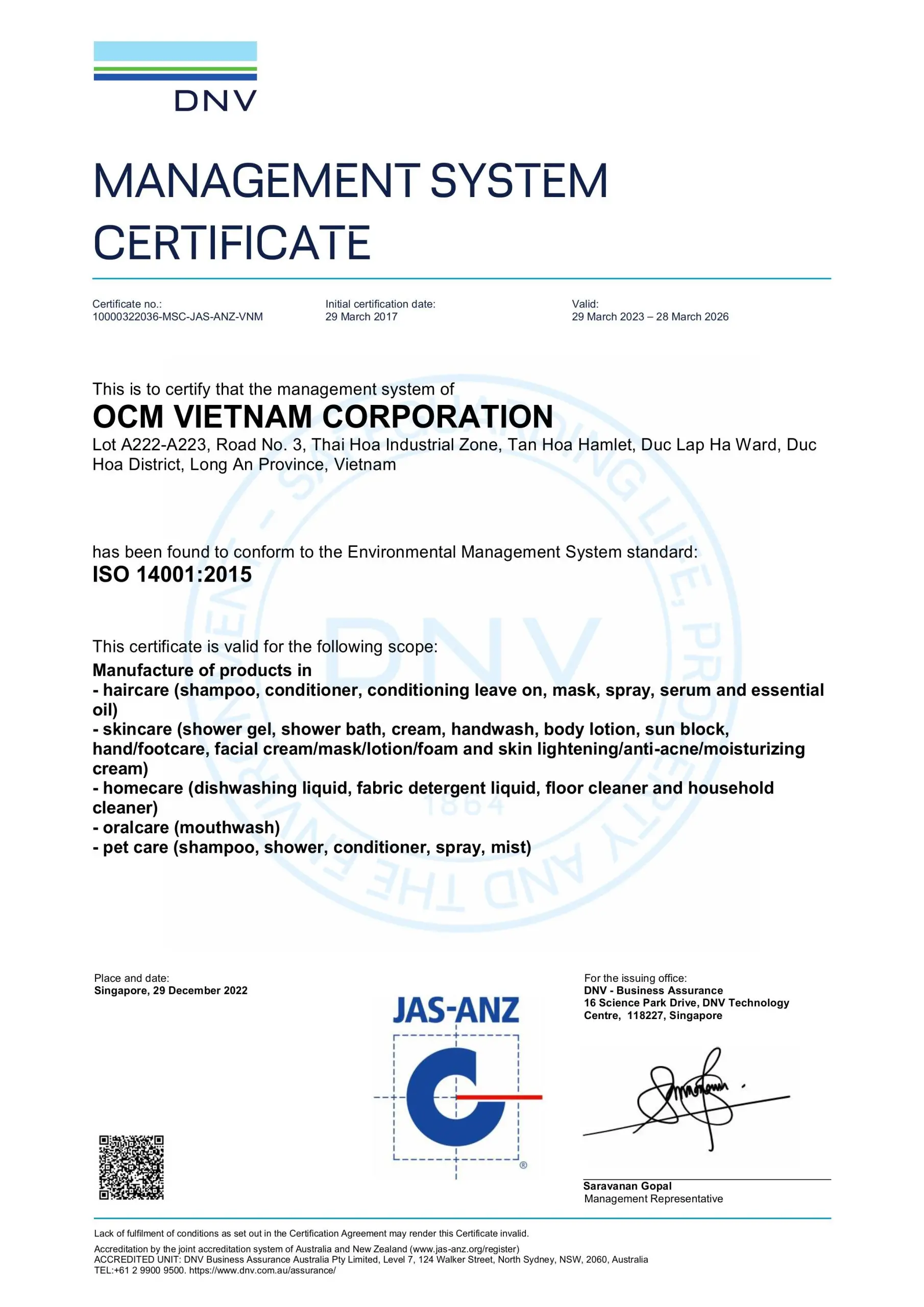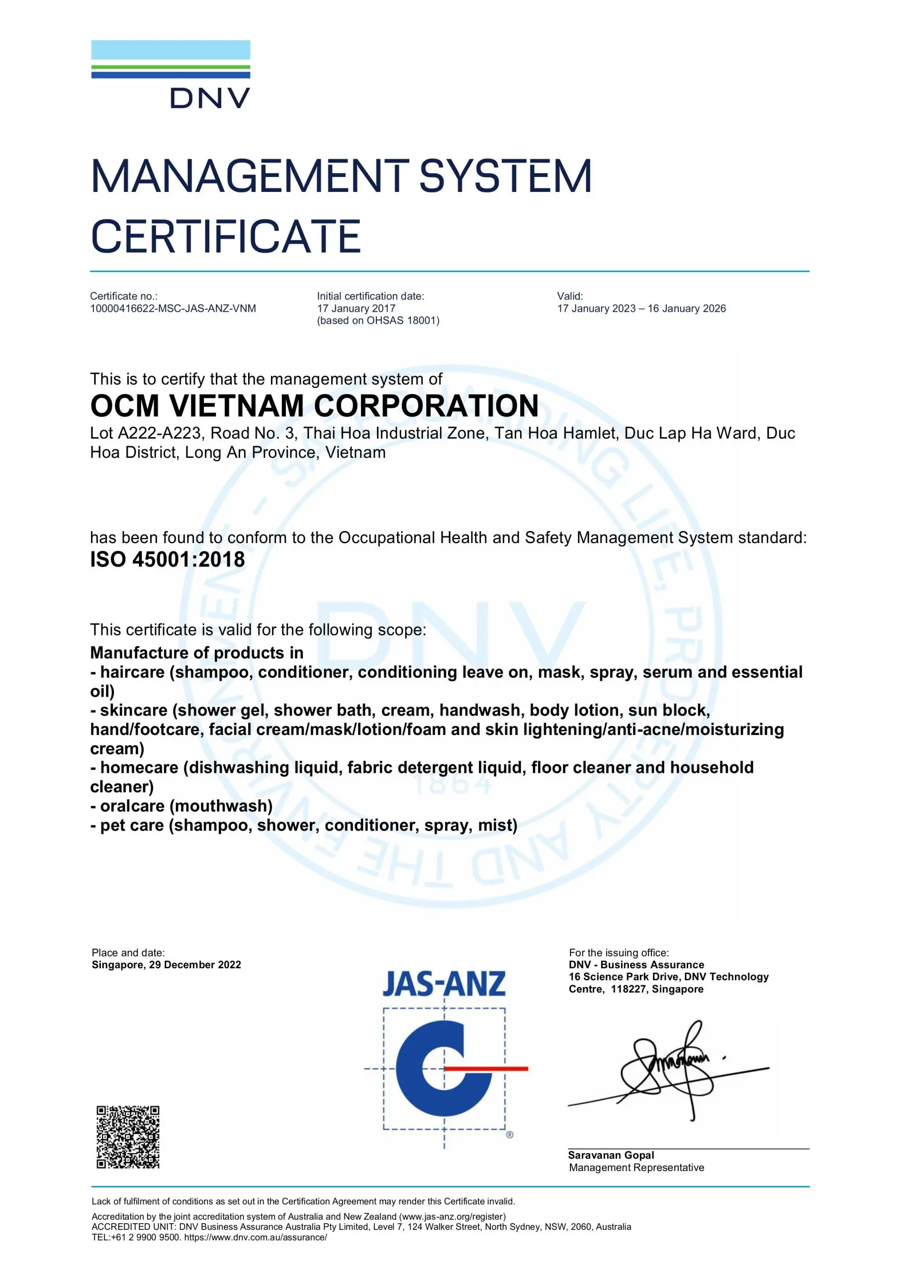 Với mong muốn đáp ứng các yêu cầu khắt khe của khách hàng trong và ngoài nước, nhằm đảm bảo môi trường làm việc an toàn cho nhân viên cũng như trách nhiệm với xã hội, OCM Việt Nam đã xây dựng quy trình sản xuất đạt chuẩn và tự hào đạt được các chứng chỉ quốc tế trong ngành mỹ phẩm.