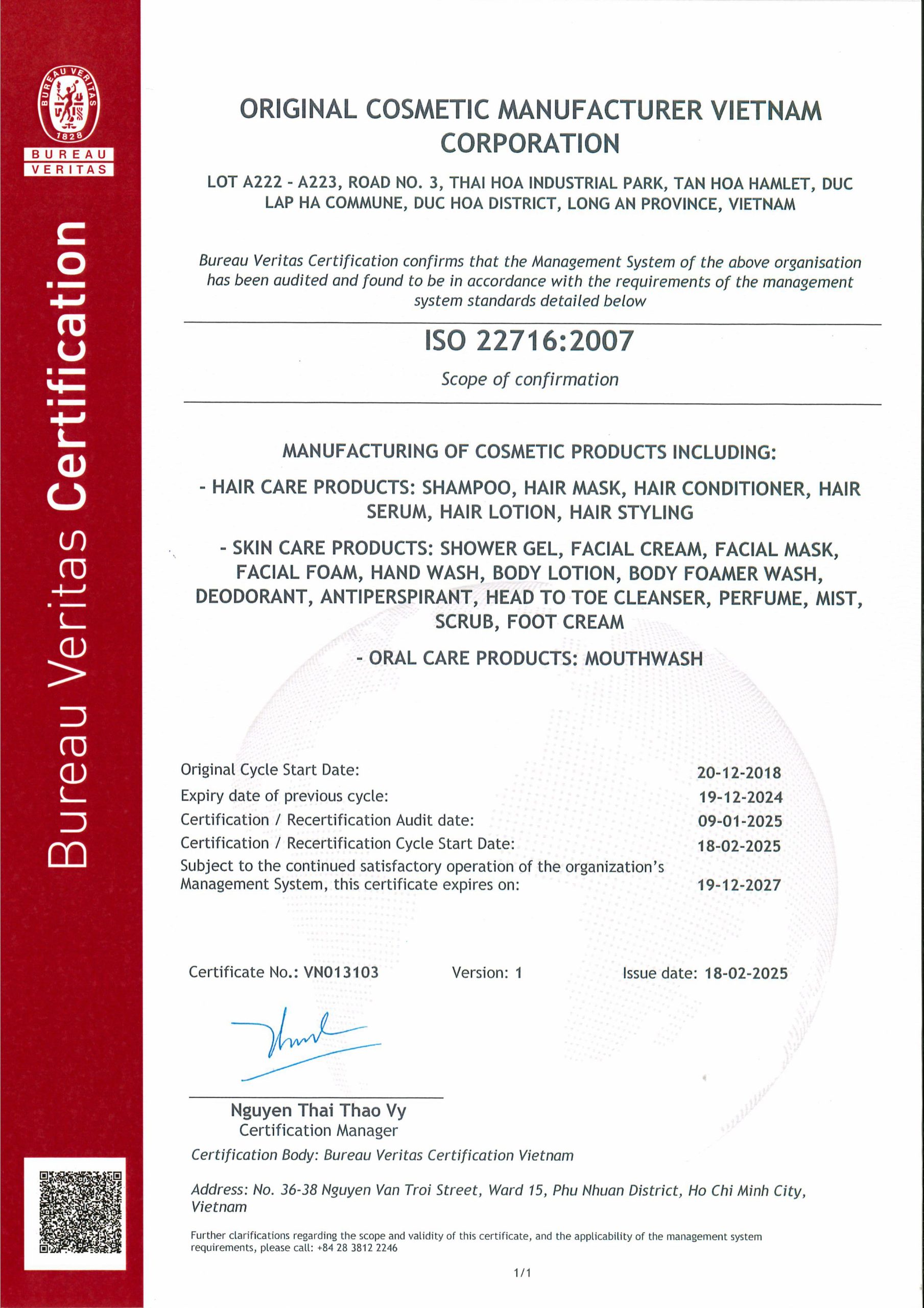 OCM VIETNAM About us About Us R & D Capability Production / QA,QC Capability Certificates About Us R & D Capability Production / QA,QC Capability Certificates CERTIFICATE Completely meeting high requirements of domestic and global clients; ensure good and desirable working environments as well as social responsibilities, OCM Vietnam invested and achieved local and global standards of cosmetic manufacturing. OCM Vietnam will be your trust partner! FDA ISO: 22716 ISO:14001 ISO: 45001